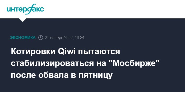 Котировки Qiwi пытаются стабилизироваться на "Мосбирже" после обвала в пятницу