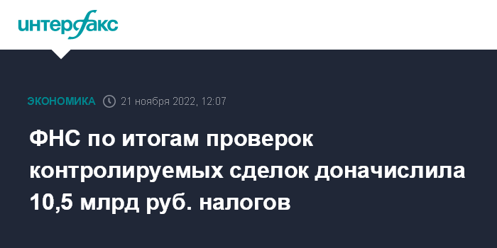 ФНС по итогам проверок контролируемых сделок доначислила 10,5 млрд руб. налогов