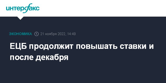 Москва. 21 ноября. INTERFAX.RU - Европейский центральный банк, вероятно, продолжит поднимать ключевые процентные ставки в следующем году, чтобы добиться возврата инфляции в еврозоне к целевому уровню в 2%, заявил Market News член совета управляющих ЕЦБ Филип Лейн. Интервью опубликовано на сайте регулятора.