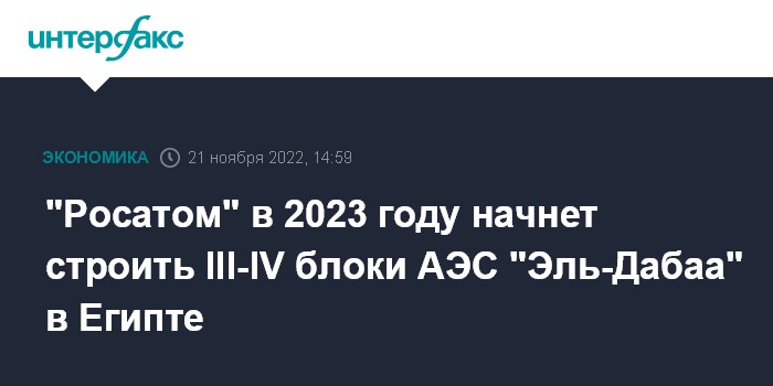 19 ноября "Росатом" начал строительство второго энергоблока АЭС "Эль-Дабаа" в Египте, состоялась церемония заливки первого бетона.