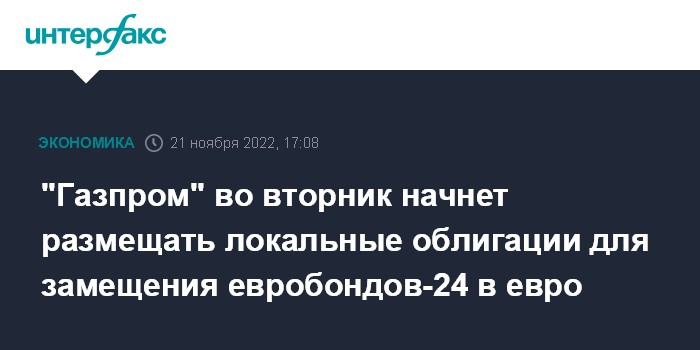"Газпром" во вторник начнет размещать локальные облигации для замещения евробондов-24 в евро
