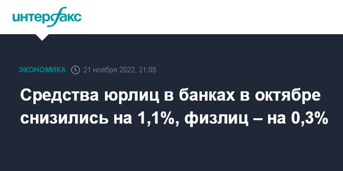 Средства юрлиц в банках в октябре снизились на 1,1%, физлиц – на 0,3%