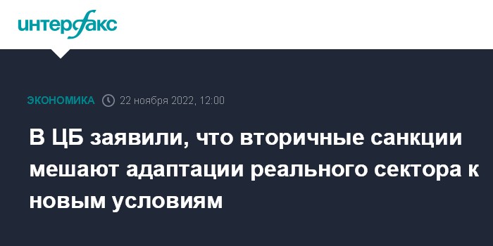 В ЦБ заявили, что вторичные санкции мешают адаптации реального сектора к новым условиям