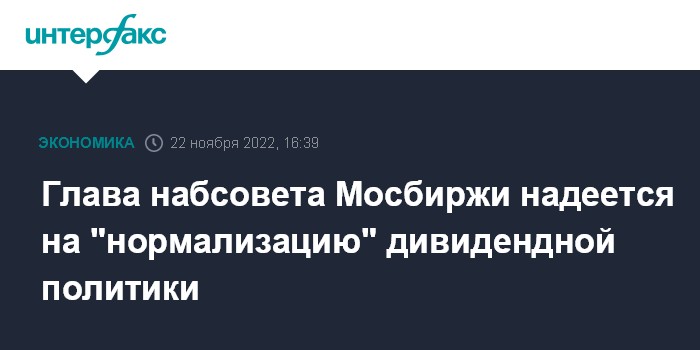 Глава набсовета Мосбиржи надеется на "нормализацию" дивидендной политики