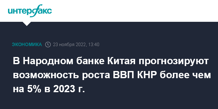 В Народном банке Китая прогнозируют возможность роста ВВП КНР более чем на 5% в 2023 г.