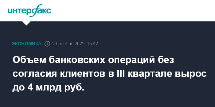 Москва. 23 ноября. INTERFAX.RU - Количество операций без согласия (ОБС) клиентов в третьем квартале 2022 года снизилось до 230 тысяч случаев, что на 10,3% меньше, чем за аналогичный период прошлого года, при этом их объем вырос на 24% – до 4 млрд рублей, следует из обзора Банка России.