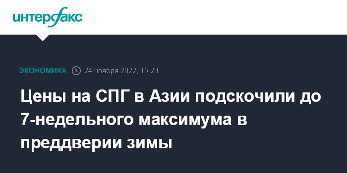 Москва. 24 ноября. INTERFAX.RU - Цены на сжиженный природный газ в среду в Азии подскочили до максимальной отметки с начала октября на беспокойстве из-за возможных проблем с поставками в преддверии зимы, пишет агентство Bloomberg.
