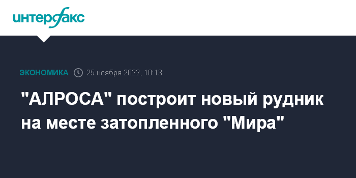 В начале 2022 года "АЛРОСА" оценивала стоимость восстановления рудника "Мир" в $1,2-1,5 млрд. Сроки работ компания оценивала в 6-9 лет.