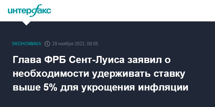 Глава ФРБ Сент-Луиса заявил о необходимости удерживать ставку выше 5% для укрощения инфляции