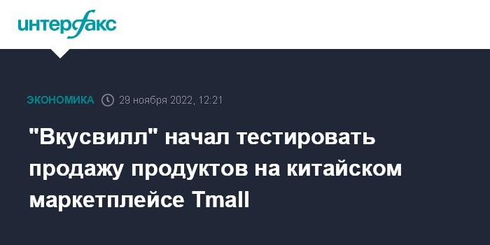 Москва. 29 ноября. INTERFAX.RU - Ритейлер "Вкусвилл" начал тестировать продажи продуктов собственного бренда на китайском маркетплейсе Tmall, говорится в сообщении компании.
