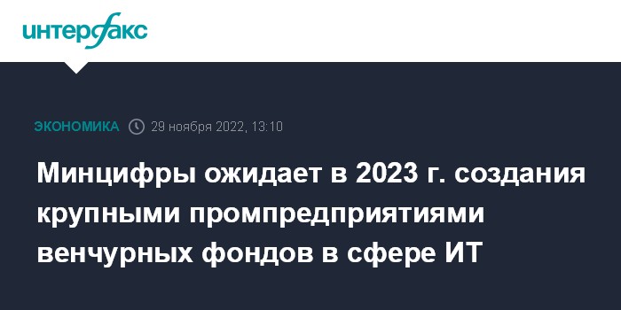 Минцифры ожидает в 2023 г. создания крупными промпредприятиями венчурных фондов в сфере ИТ