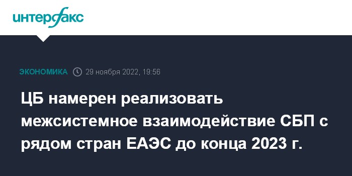 ЦБ намерен реализовать межсистемное взаимодействие СБП с рядом стран ЕАЭС до конца 2023 г.