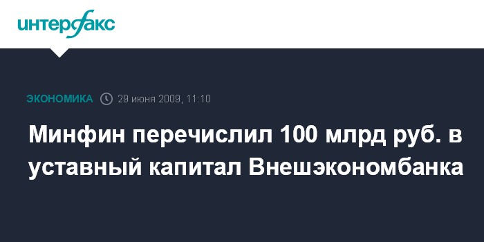 Москва. 29 июня. INTERFAX.RU - Минфин РФ в соответствии с распоряжением правительства РФ перечислил средства в уставной капитал государственной корпорации "Банк развития и внешнеэкономической деятельности (Внешэкономбанк)" (ВЭБ) в сумме 100 млрд рублей, говорится в сообщении ВЭБа