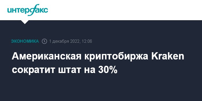 Москва. 1 декабря. INTERFAX.RU - Американская криптовалютная биржа Kraken планирует уволить около 1,1 тыс. сотрудников, что составляет примерно 30% штата, сообщила компания.