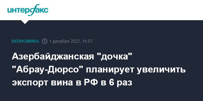 Азербайджанская "дочка" "Абрау-Дюрсо" планирует увеличить экспорт вина в РФ в 6 раз