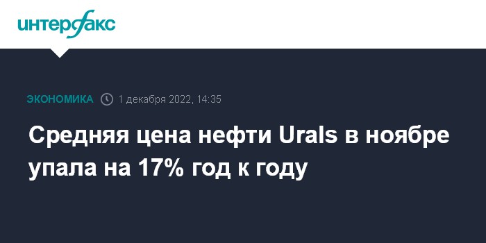 Средняя цена нефти Urals в ноябре упала на 17% год к году