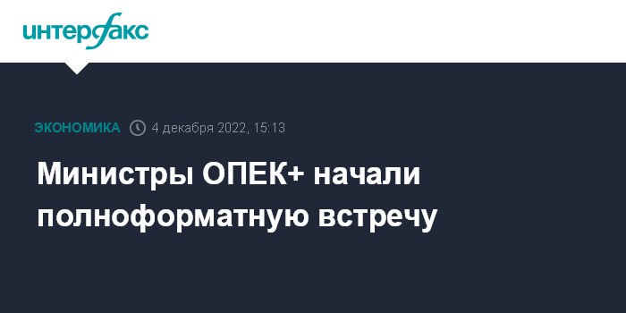 Москва. 4 декабря. INTERFAX.RU - Министры ОПЕК+ начали полноформатную встречу, сообщил "Интерфаксу" в воскресенье источник в одной из делегаций.