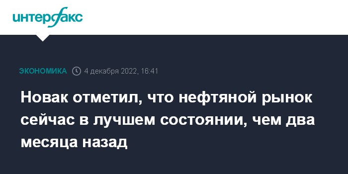 Новак отметил, что нефтяной рынок сейчас в лучшем состоянии, чем два месяца назад