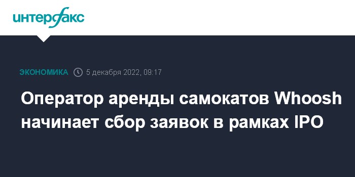 Оператор аренды самокатов Whoosh начинает сбор заявок в рамках IPO