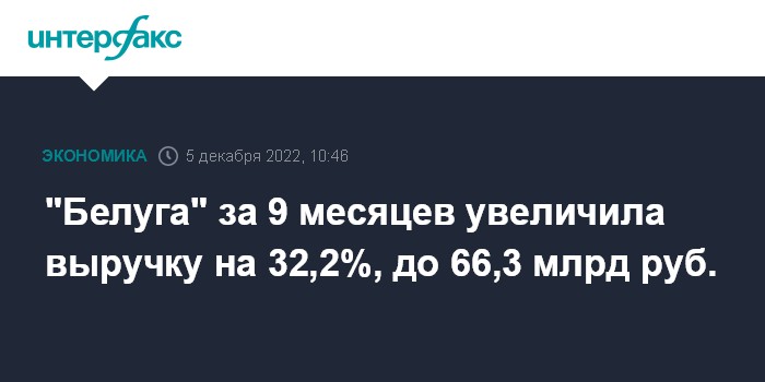 "Белуга" за 9 месяцев увеличила выручку на 32,2%, до 66,3 млрд руб.
