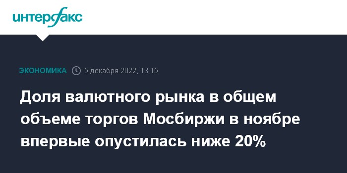 Доля валютного рынка в общем объеме торгов Мосбиржи в ноябре впервые опустилась ниже 20%