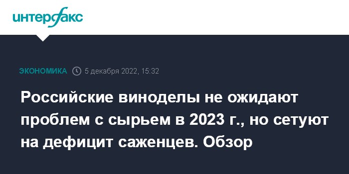 Российские виноделы не ожидают проблем с сырьем в 2023 г., но сетуют на дефицит саженцев. Обзор