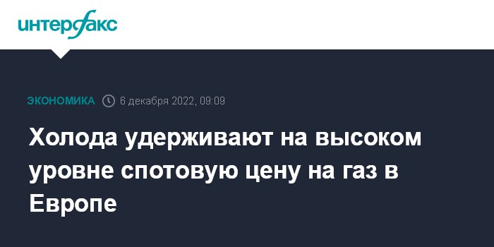 Холода удерживают на высоком уровне спотовую цену на газ в Европе