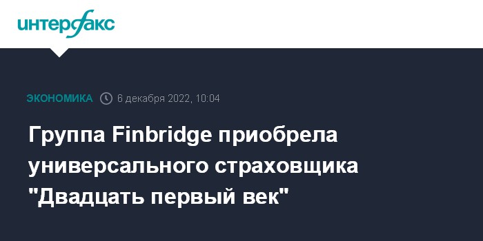 Группа Finbridge приобрела универсального страховщика "Двадцать первый век"