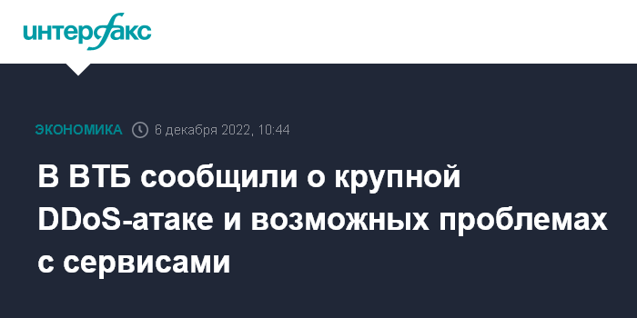В ВТБ сообщили о крупной DDoS-атаке и возможных проблемах с сервисами