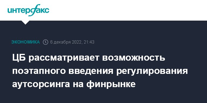 ЦБ рассматривает возможность поэтапного введения регулирования аутсорсинга на финрынке