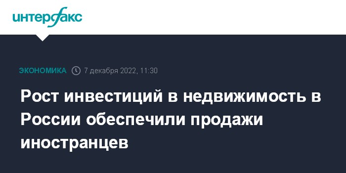 Рост инвестиций в недвижимость в России обеспечили продажи иностранцев