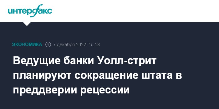 Ведущие банки Уолл-стрит планируют сокращение штата в преддверии рецессии