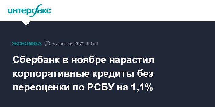 Сбербанк в ноябре нарастил корпоративные кредиты без переоценки по РСБУ на 1,1%