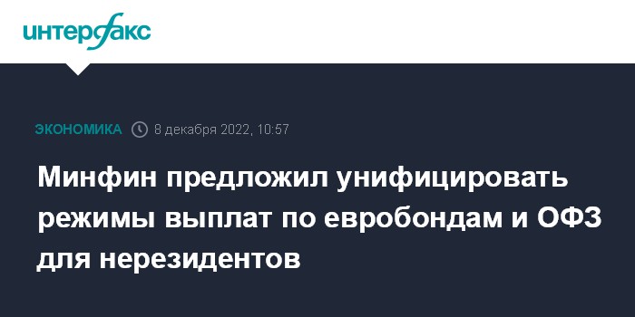 Минфин предложил унифицировать режимы выплат по евробондам и ОФЗ для нерезидентов