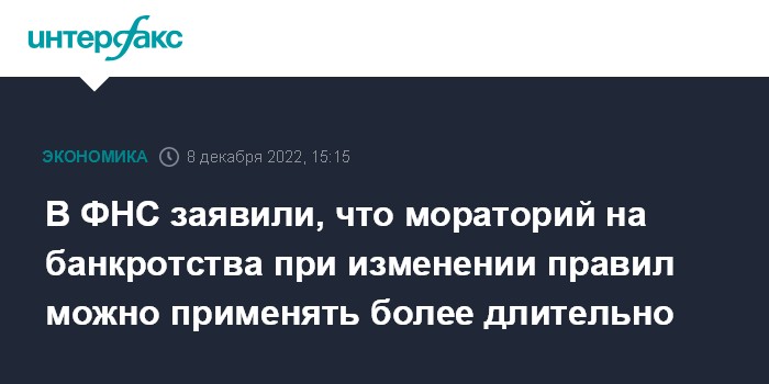 В ФНС заявили, что мораторий на банкротства при изменении правил можно применять более длительно
