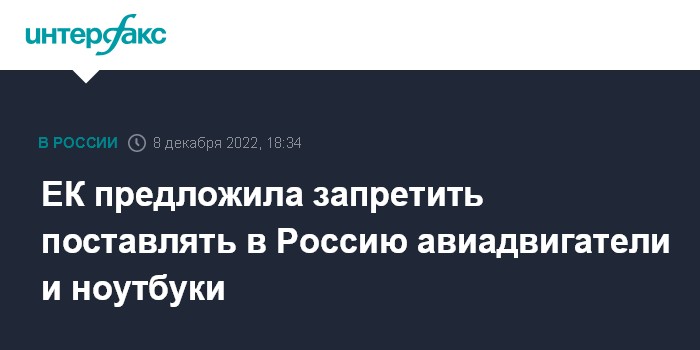 ЕК предложила запретить поставлять в Россию авиадвигатели и ноутбуки