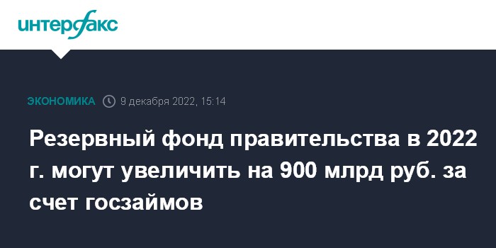 Москва. 9 декабря. INTERFAX.RU - Резервный фонд правительства РФ в 2022 году может быть увеличен на 900 млрд рублей за счет государственных займов без внесения соответствующих поправок в федеральный бюджет, следует из одобренных в пятницу комитетом Госдумы по бюджету правительственных поправок.