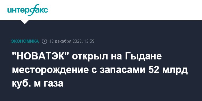 "НОВАТЭК" открыл на Гыдане месторождение с запасами 52 млрд куб. м газа