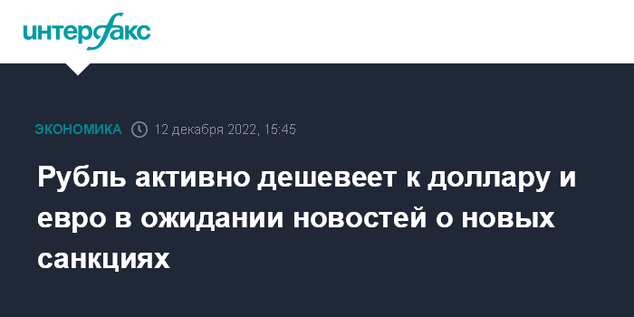 Как отмечают эксперты "Интерфакс-ЦЭА", рубль активно дешевеет к доллару и евро в ходе дневных торгов в ожидании развития событий на тему санкций. Ожидается, что позднее в понедельник или во вторник станут известны детали девятого пакета санкций ЕС против России, который еще находится в стадии согласования, заявил глава дипломатии ЕС Жозеп Боррель перед встречей глав МИД стран ЕС.