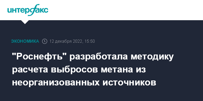 Москва. 12 декабря. INTERFAX.RU - "Роснефть" разработала корпоративную методику количественной оценки объема эмиссии метана от неорганизованных источников, говорится в сообщении компании.