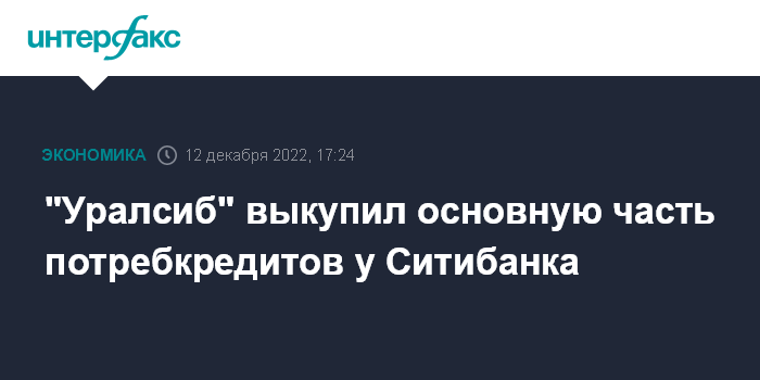 Москва. 12 декабря. INTERFAX.RU - Банк "Уралсиб" закрыл сделку по покупке портфеля потребительских кредитов у Ситибанка (российская "дочка" американской группы Citi).