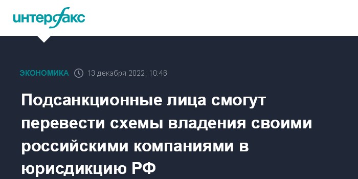 Подсанкционные лица смогут перевести схемы владения своими российскими компаниями в юрисдикцию РФ