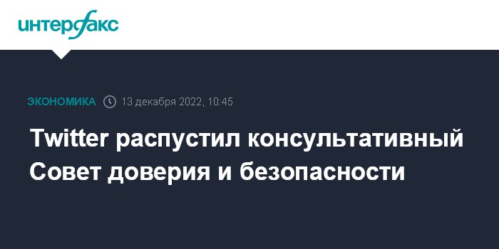 Москва. 13 декабря. INTERFAX.RU - Руководство Twitter решило распустить действовавший при компании с 2016 года консультативный Совет доверия и безопасности, который должен был помогать сервису бороться с распространением ненавистнических сообщений, вредоносного контента и других проблем, передает АР.
