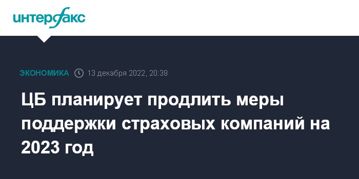 ЦБ планирует продлить меры поддержки страховых компаний на 2023 год