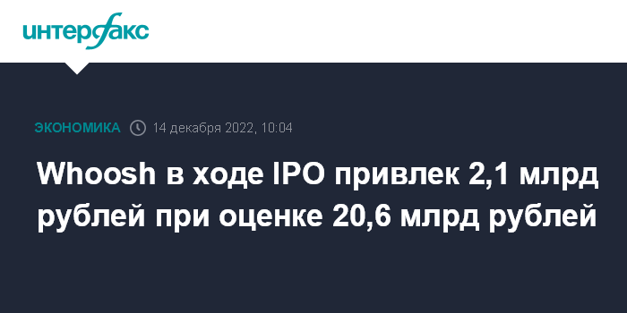 Whoosh в ходе IPO привлек 2,1 млрд рублей при оценке 20,6 млрд рублей