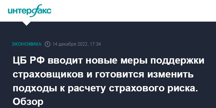 Москва. 14 декабря. INTERFAX.RU - Банк России обнародовал новый пакет мер поддержки для страховщиков и порядок списания убытков по замороженным иностранным активам. Меры поддержки в следующем году, как и в 2022-м, будут увязаны с политикой отказа игроков от распределения прибыли и выплаты дивидендов. Регулятор поделился с "Интерфаксом" новыми подходами к оценке финансовой устойчивости и платежеспособности страховщиков, сообщил о готовящихся переменах на рынке страхования жизни и в кредитном страховании, проинформировал о возможной отмене лицензирования для страховых брокеров и о планах регулирования в сегменте обществ взаимного страхования (ОВС).