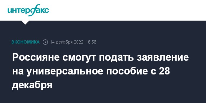 Россияне смогут подать заявление на универсальное пособие с 28 декабря