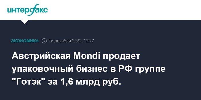 Австрийская Mondi продает упаковочный бизнес в РФ группе "Готэк" за 1,6 млрд руб.