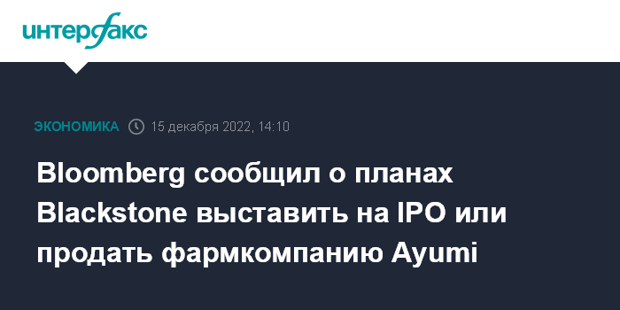 По их словам, Blackstone рассматривает эти возможности наряду с другими стратегическими вариантами для Ayumi, фармкомпания может быть оценена не менее чем в $1 млрд.