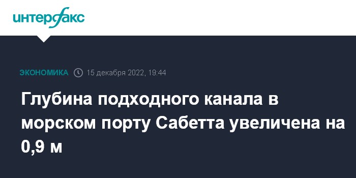 Москва. 15 декабря. INTERFAX.RU - Морской порт Сабетта объявил об изменениях фактических глубин на подходном канале и у некоторых причалов, глубина канала составила 13 м, говорится в распоряжении капитана морского порта, опубликованного на сайте администрации морских портов Западной Арктики.
